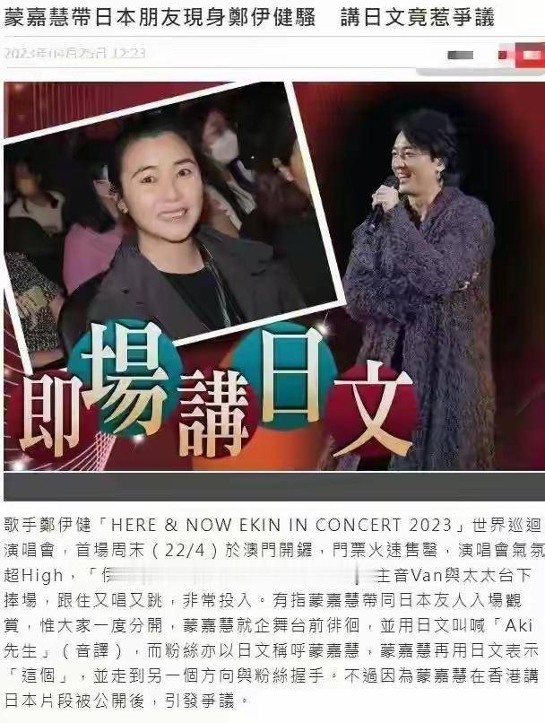 她本人还因为在郑伊健的演唱会上讲日文引起争议