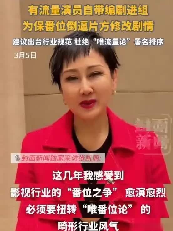 作为文艺界别委员、中广联合会演员委员会副会长,张凯丽有资格说这话,也必须说这话。她见证过好作品的诞生,也目睹过烂作品如何被资本和流量毁掉。她明白,当演员心思全放在争排名上,戏还能看吗?当编剧的笔被迫为咖位服务,故事还能打动人吗?