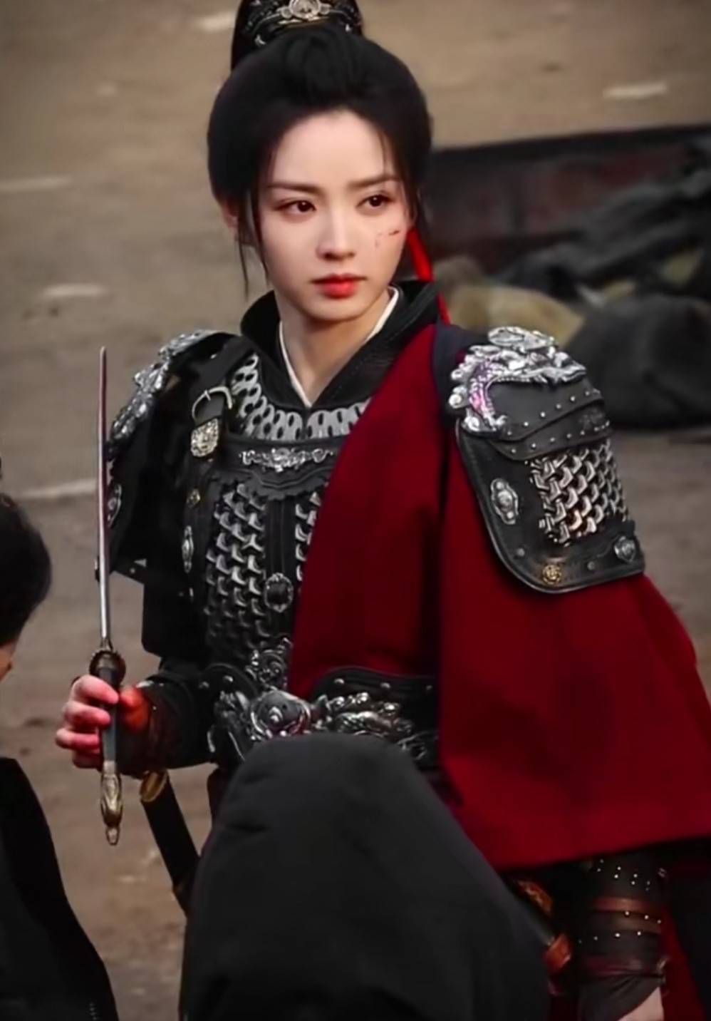 但最惊艳的还是一身盔甲的铁血大将造型,霸气威武又凌厉冷艳,眼神中都透着杀气。