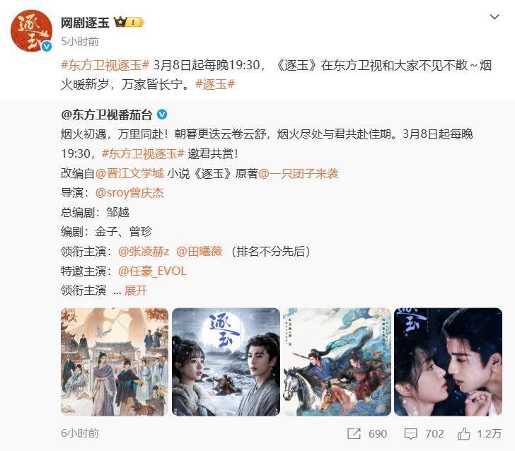接下来即将跟大家见面的,是定档于3月8日的40集《逐玉》。